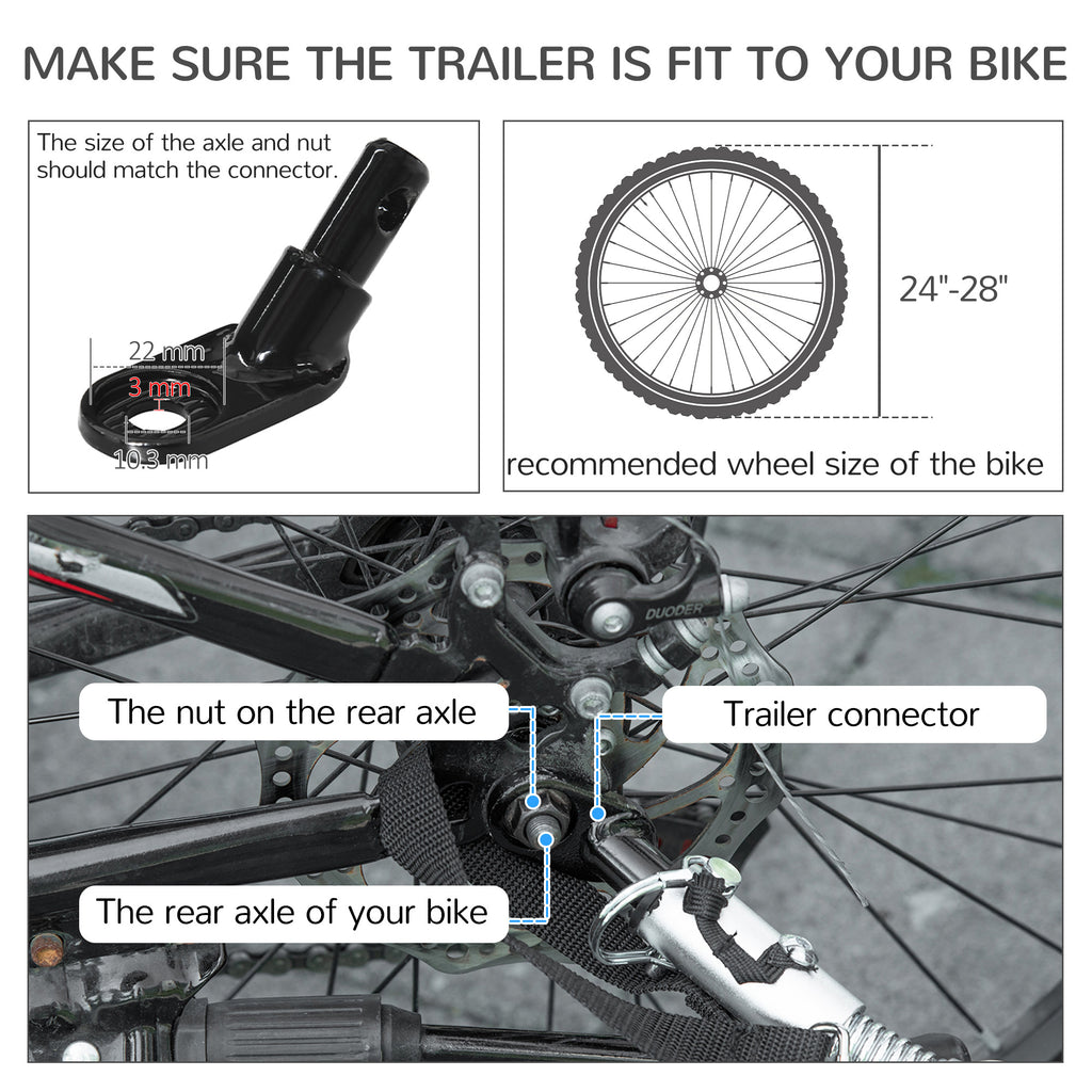 - Il rimorchio bici per cani si collega alla bicicletta grazie al gancio incluso
