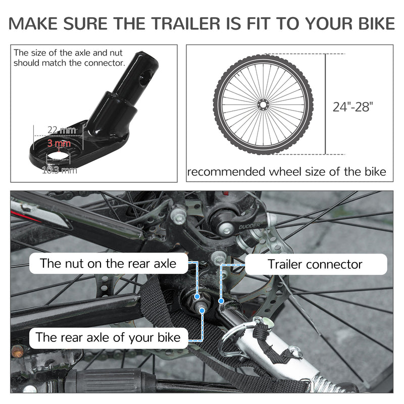 - Dimensioni ruota bicicletta adatta: Ø24'' - Ø28''