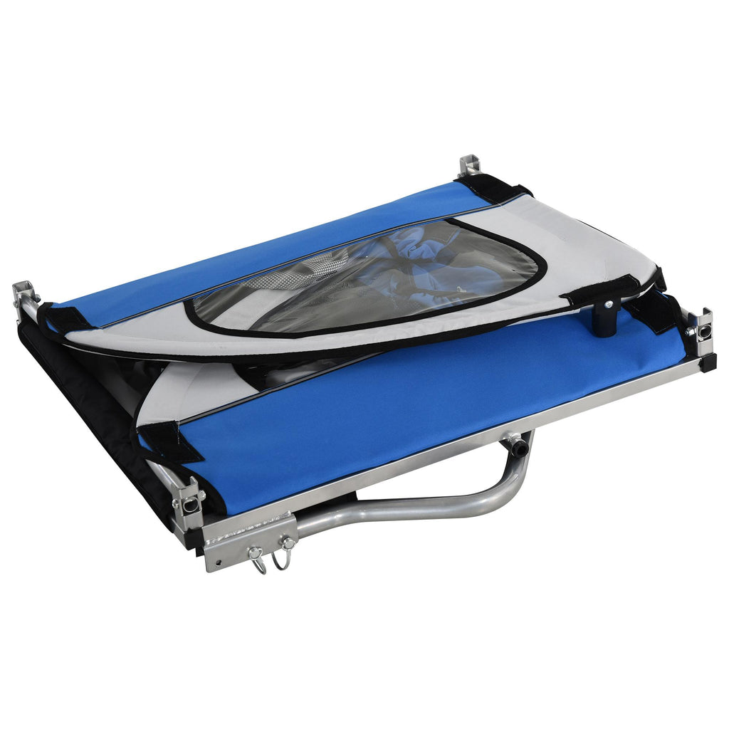 Rimorchio Carrello per Bicicletta porta Bambini 2 Posti in Acciaio e Tessuto Blue e Bianco