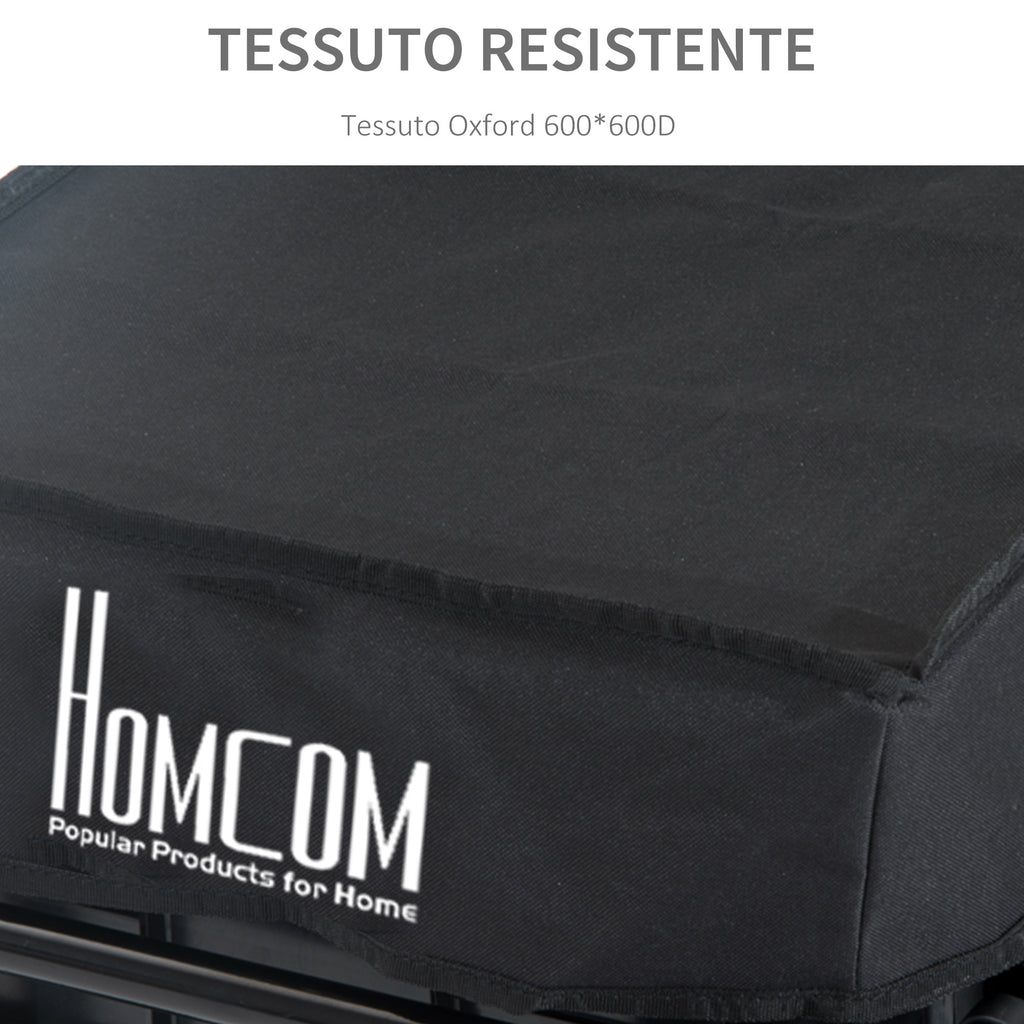 Il telo di copertura è realizzato in tessuto oxford con rivestimento impermeabile.
