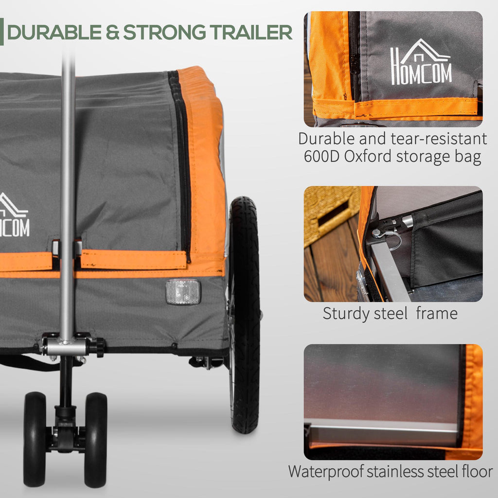 Rimorchio per Bicicletta 130x64x60/97 cm in Acciaio e Sacca in Tessuto Oxford Arancione e Argento