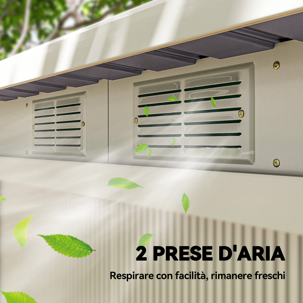 Ripostiglio da Giardino 280x130x172 cm con 2 Prese d'Aria e 2 Porte Scorrevoli in Acciaio Grigio Chiaro