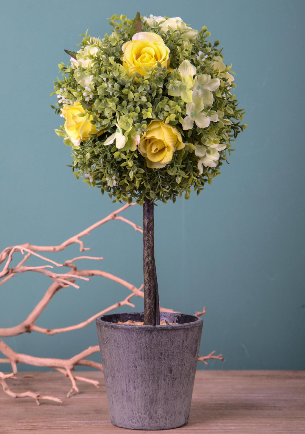 Rose Artificiali su Topiary Altezza 27,5 cm Giallo