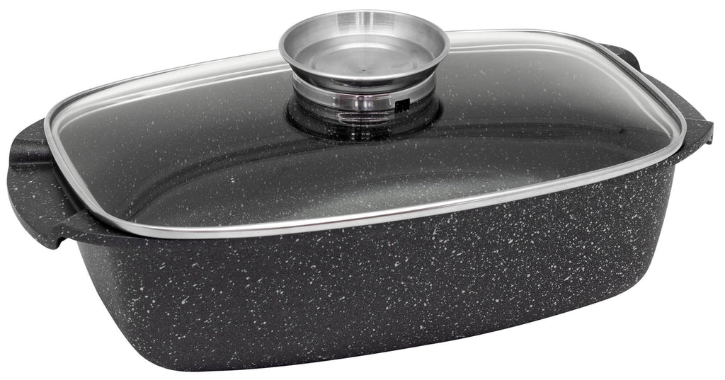 Rostiera 32x20 cm in Alluminio Pressofuso Antiaderente con Coperchio Collection Grigio Marmorizzato