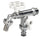 Rubinetto a sfera cromato a doppia uscita, principale con attacco gomma tradizionale, secondaria con attacco gomma rapido.