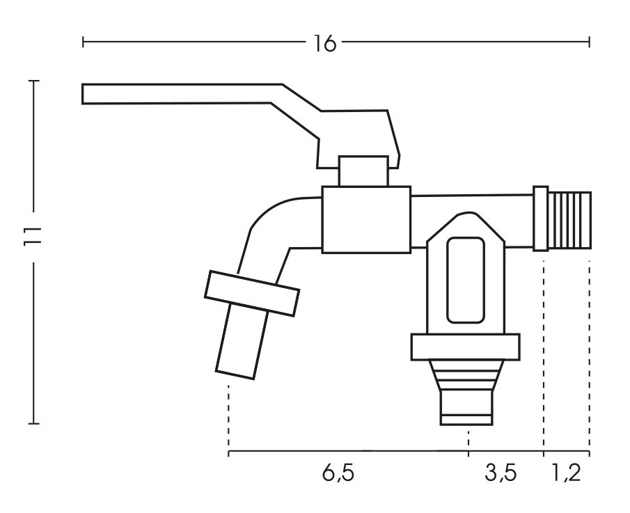 Rubinetto a sfera cromato a doppia uscita, uscita principale con attacco gomma tradizionale, uscita secondaria con attacco rapido. Leve verniciate.