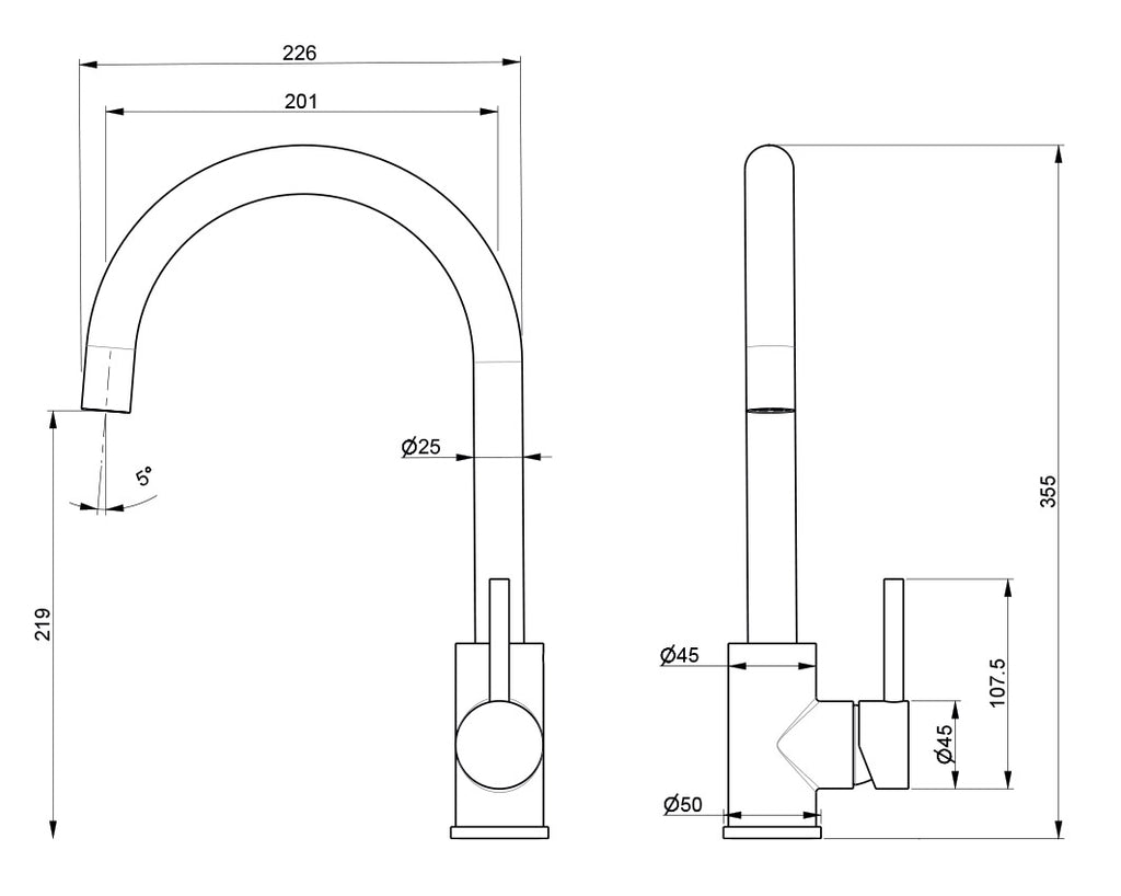 Rubinetto Cucina Miscelatore Monocomando Lavello Canna Tonda Girevole in Acciaio Inox