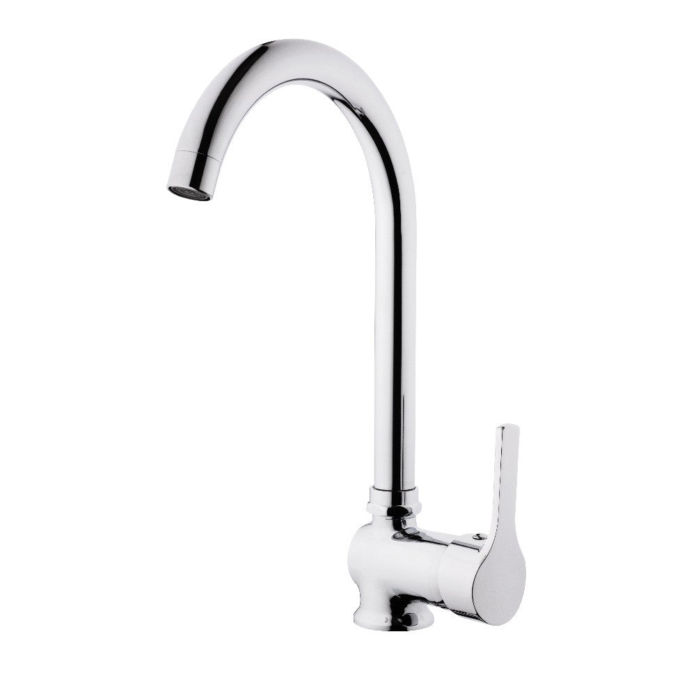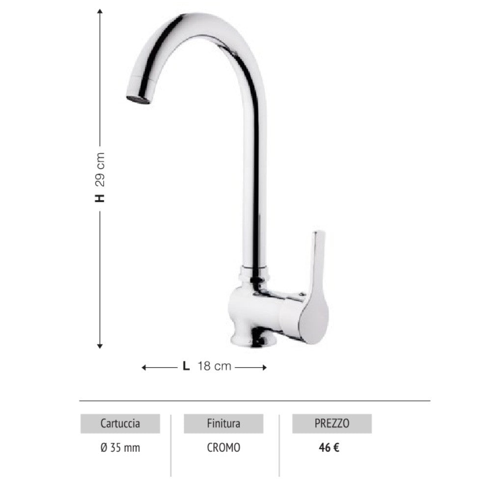 Rubinetto Cucina Miscelatore Monocomando Lavello Canna Tonda in Ottone Bluevye Cromato