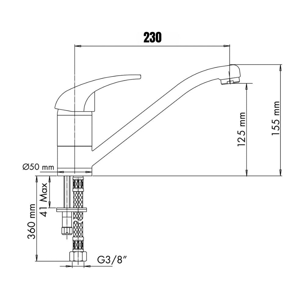 Il miscelatore da cucina monocomando Paini Creta 100 in granito sabbia è un rubinetto moderno e funzionale per il lavabo della cucina. Realizzato in ottone di alta qualità, presenta una finitura elegante in granito sabbia. Le sue dimensioni compatte di altezza 15 cm, larghezza 23 cm e diametro 5 cm lo rendono adatto a qualsiasi lavabo da cucina. Con un unico foro per l'erogazione dell'acqua calda e fredda, questo rubinetto è un'ottima scelta per chi desidera un design minimalista e una grande praticità.
