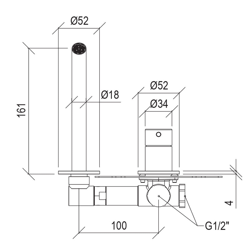 Rubinetto Miscelatore Monocomando a Parete Lavabo Rame Tevere