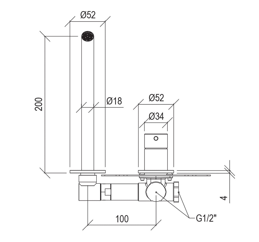 Rubinetto Miscelatore Monocomando a Parete Lavabo Rame Tevere