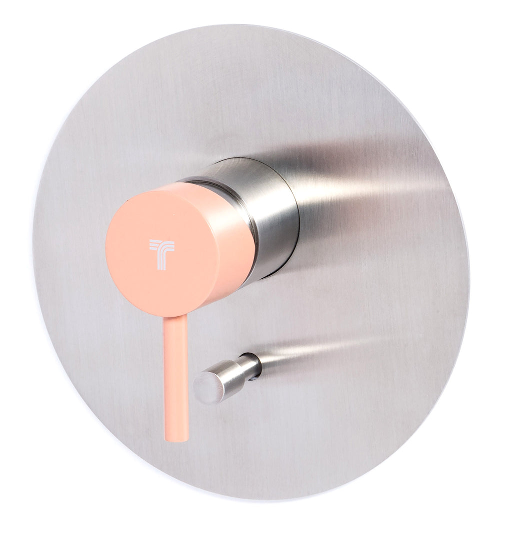 Rubinetto Miscelatore Monocomando Doccia ad Incasso con Deviatore in Acciaio Inox Maniglia Cipria