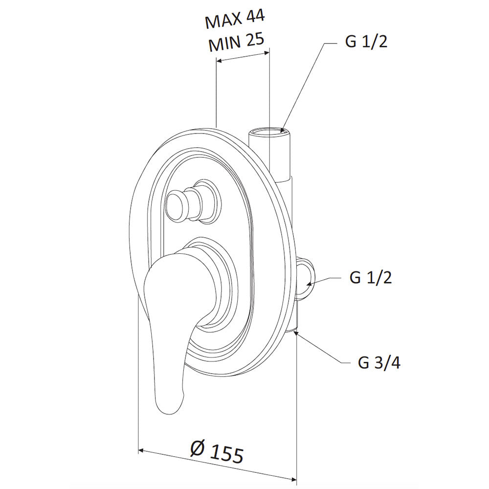 Miscelatore monocomando incasso doccia Mariani Epic 173/E2. Con deviatore e cartuccia a dischi ceramici ø 40 mm.