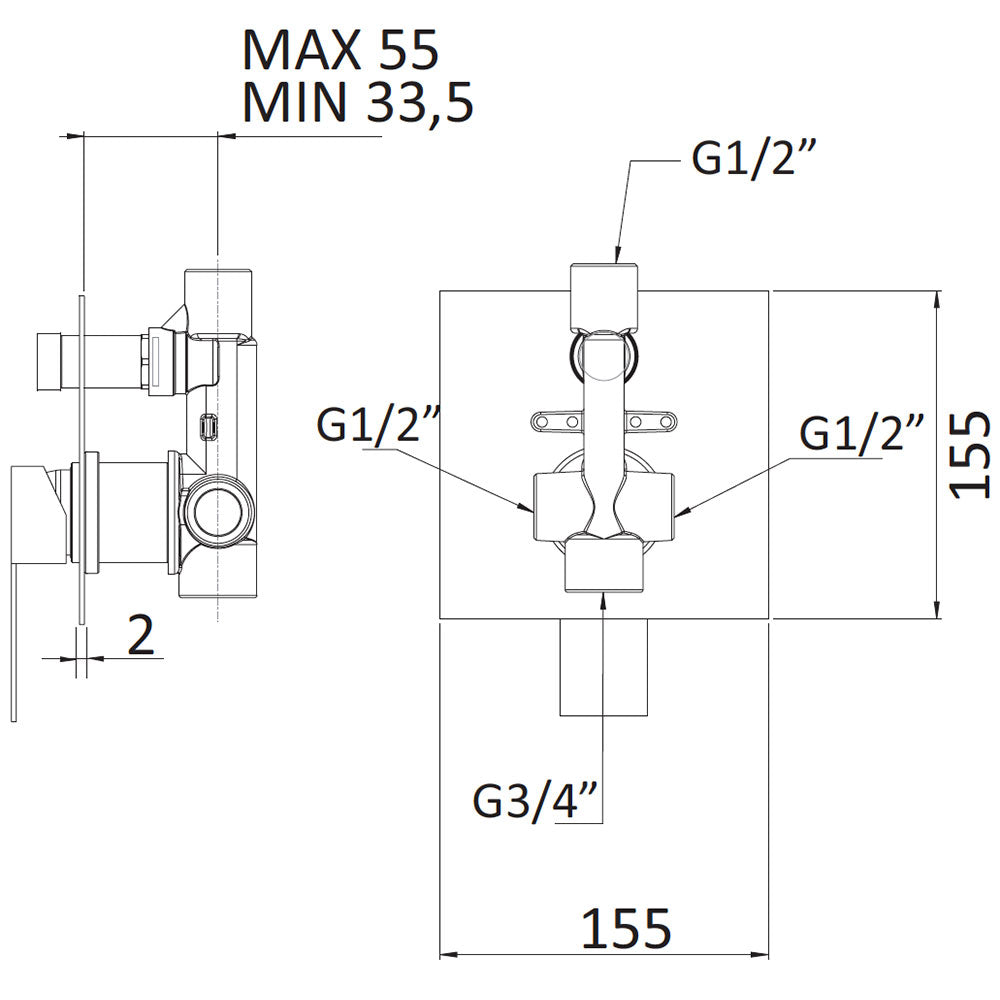 Miscelatore monocomando Incasso Doccia Mariani Polar 173/PA. Con Deviatore e cartuccia a dischi ceramici ø 35 mm.