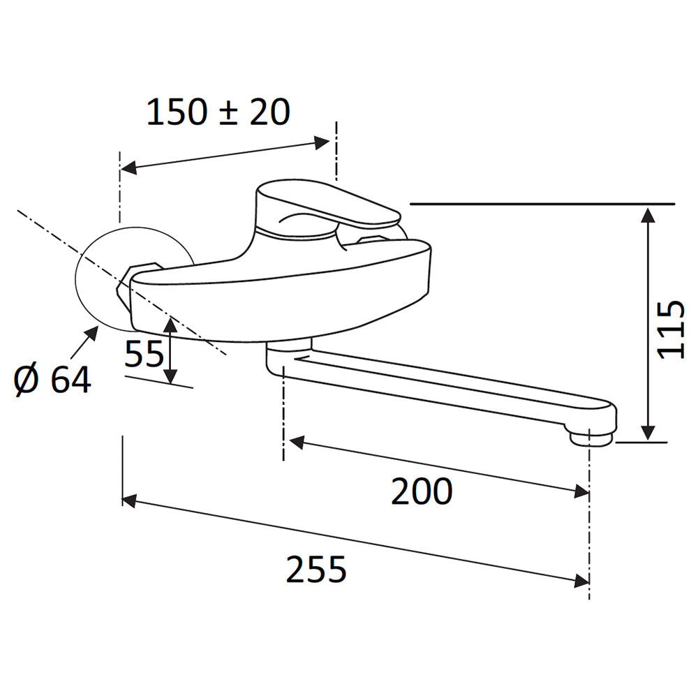 Miscelatore monocomando a Parete per Lavello Cucina con bocca alta girevole Mariani Surf 501/SF. Regolazione cartuccia a dischi ceramici ø 35 mm.