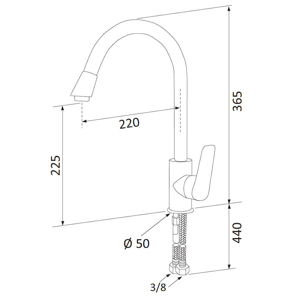 Miscelatore monocomando Lavello Cucina con bocca alta girevole Mariani Essenza 506/ES. Regolazione cartuccia a dischi ceramici ø 35 mm.