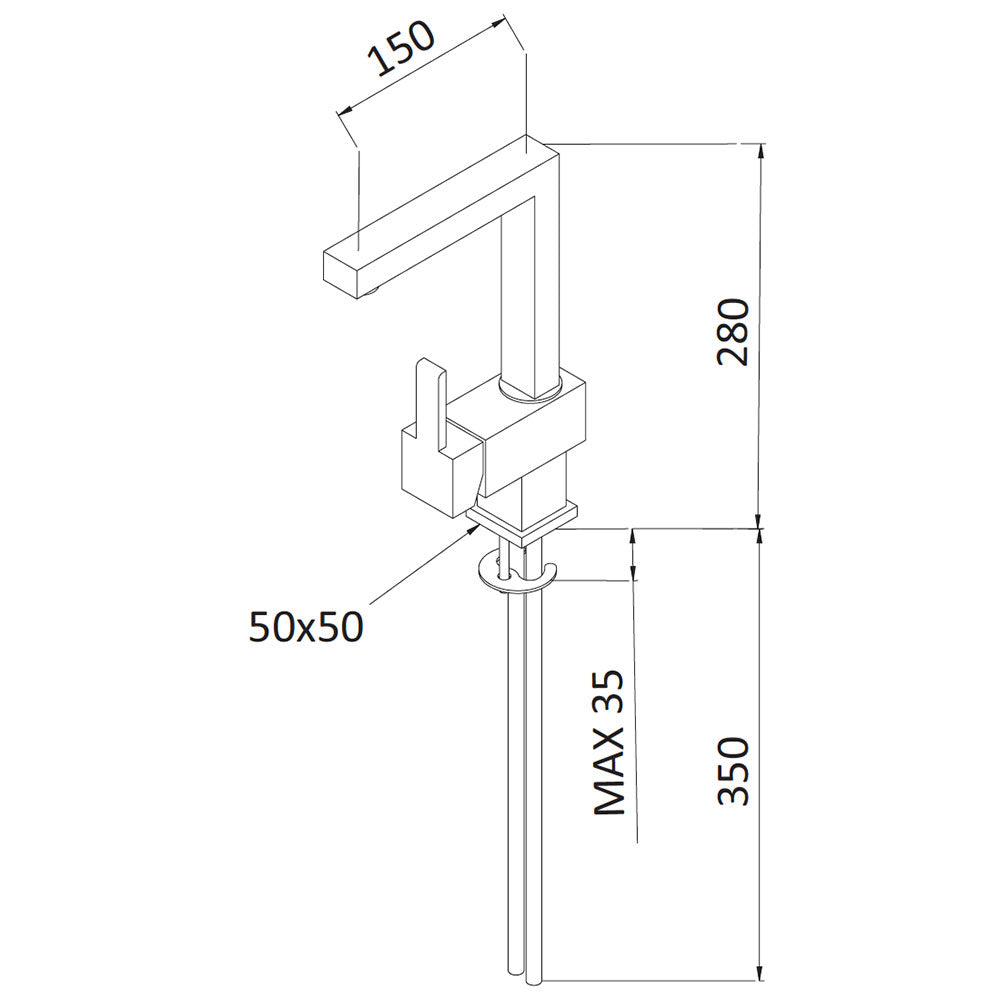 Miscelatore monocomando Lavello Cucina con bocca alta girevole Mariani Quadra 506/QN. Regolazione cartuccia a dischi ceramici ø 35 mm.