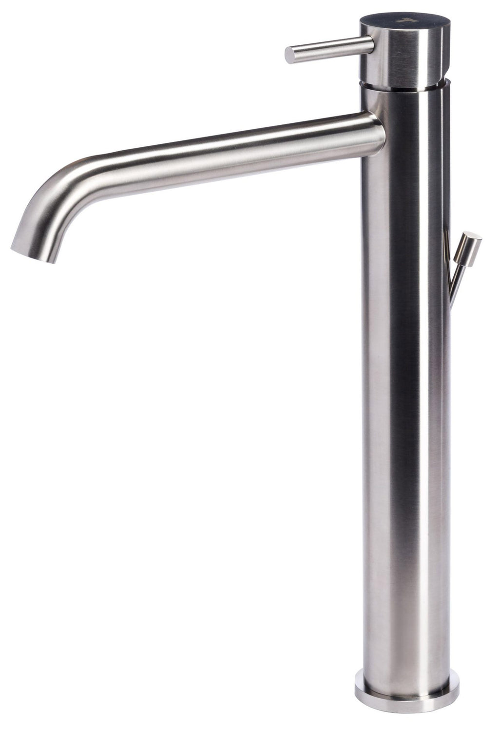 Rubinetto Miscelatore Monocomando Lavabo Alto con Scarico in Acciaio Inox Satinato Nilo