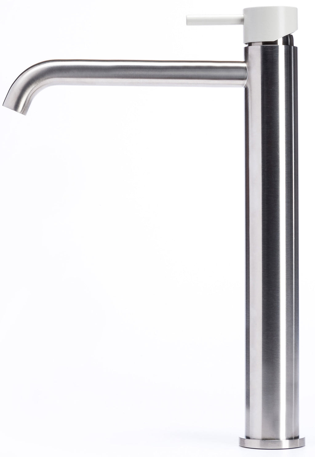 Rubinetto Miscelatore Monocomando Lavabo Alto in Acciaio Inox Satinato Maniglia Perla