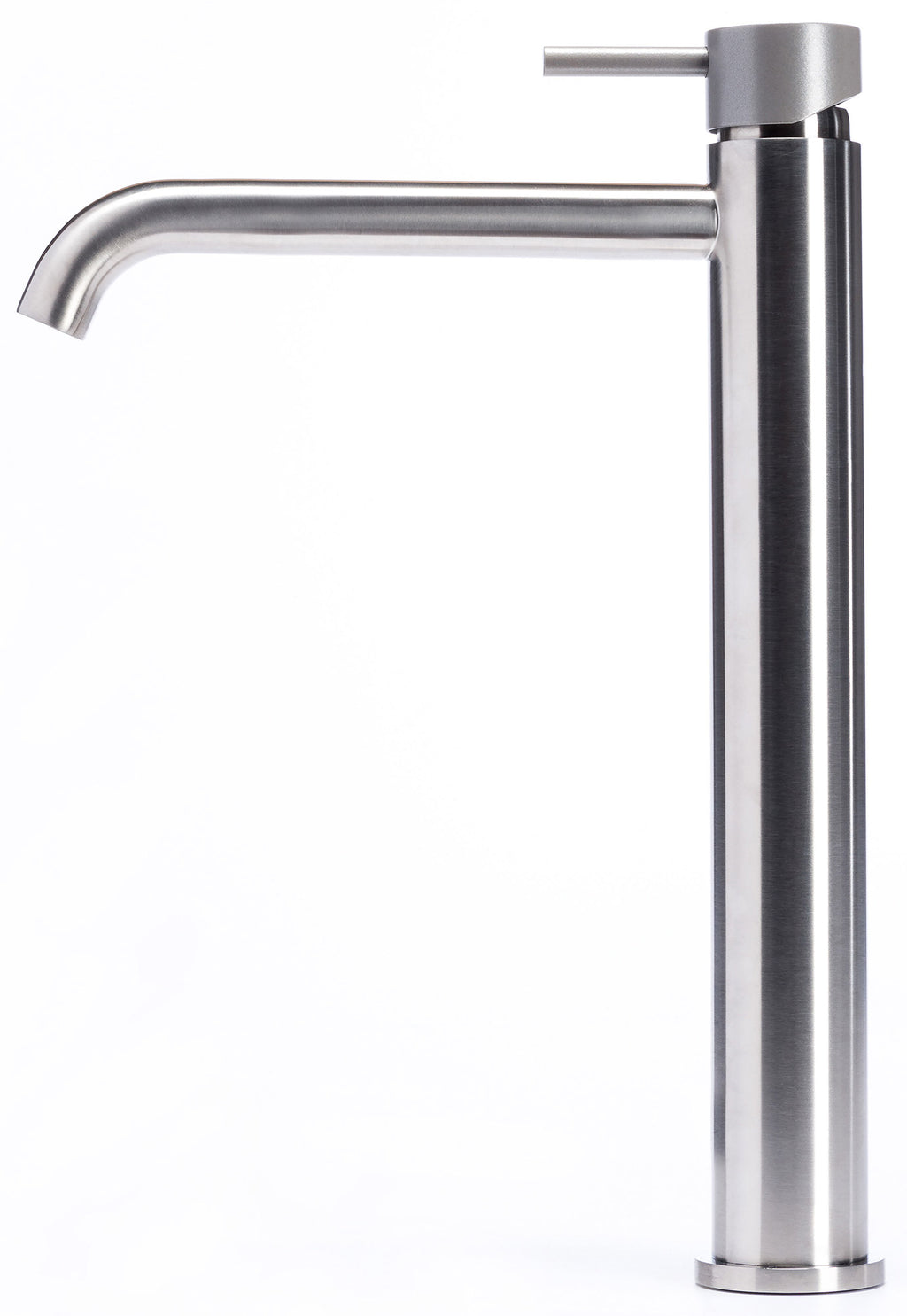 Rubinetto Miscelatore Monocomando Lavabo Alto in Acciaio Inox Satinato Maniglia Roccia