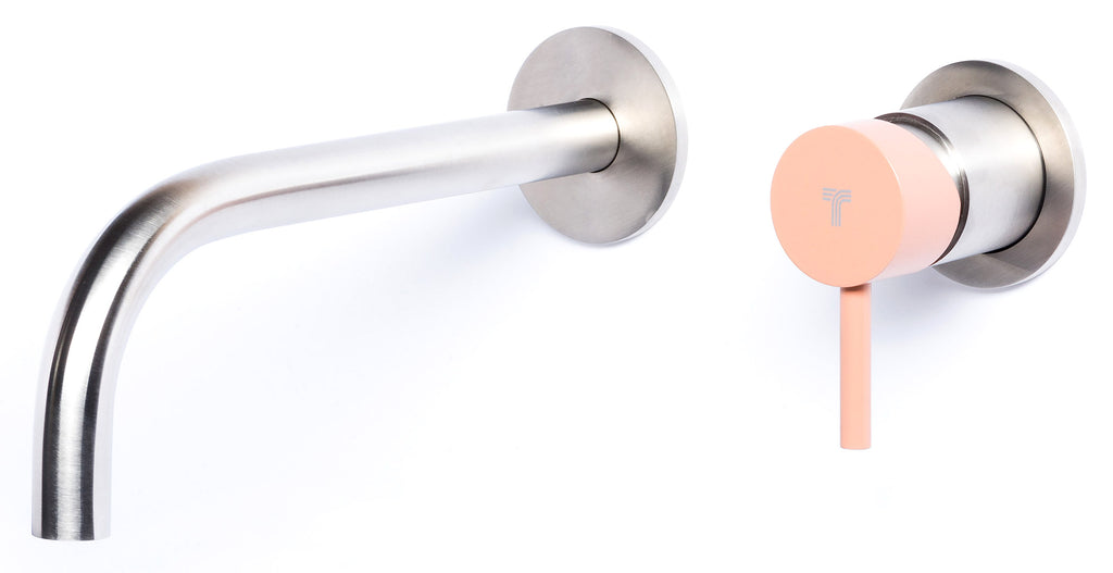 Rubinetto Miscelatore Monocomando Lavabo da Parete in Acciaio Inox Maniglia Cipria