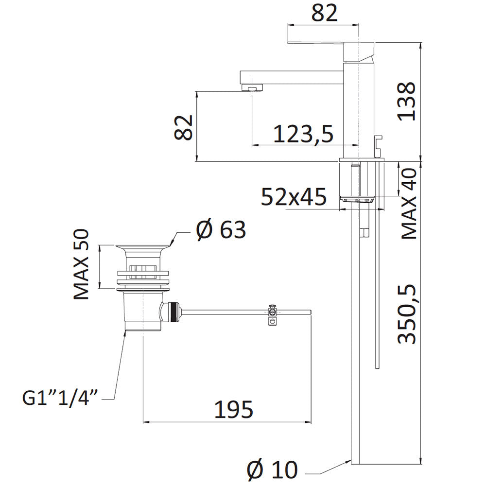 Miscelatore monocomando Lavabo con Scarico Mariani Polar 393/PA. Regolazione cartuccia a dischi ceramici ø 25 mm.