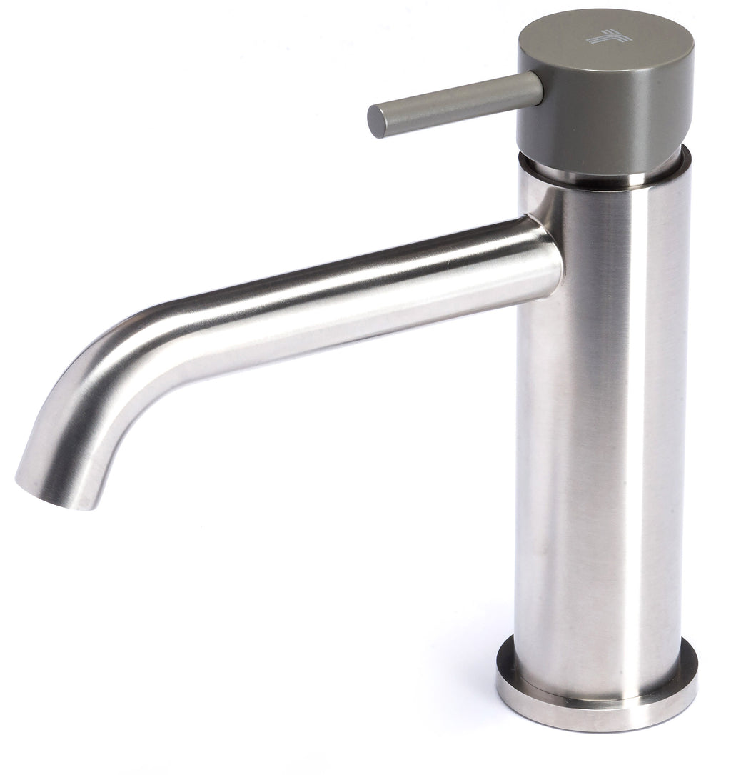 Rubinetto Miscelatore Monocomando Lavabo senza Scarico in Acciaio Inox Satinato Maniglia Antracite
