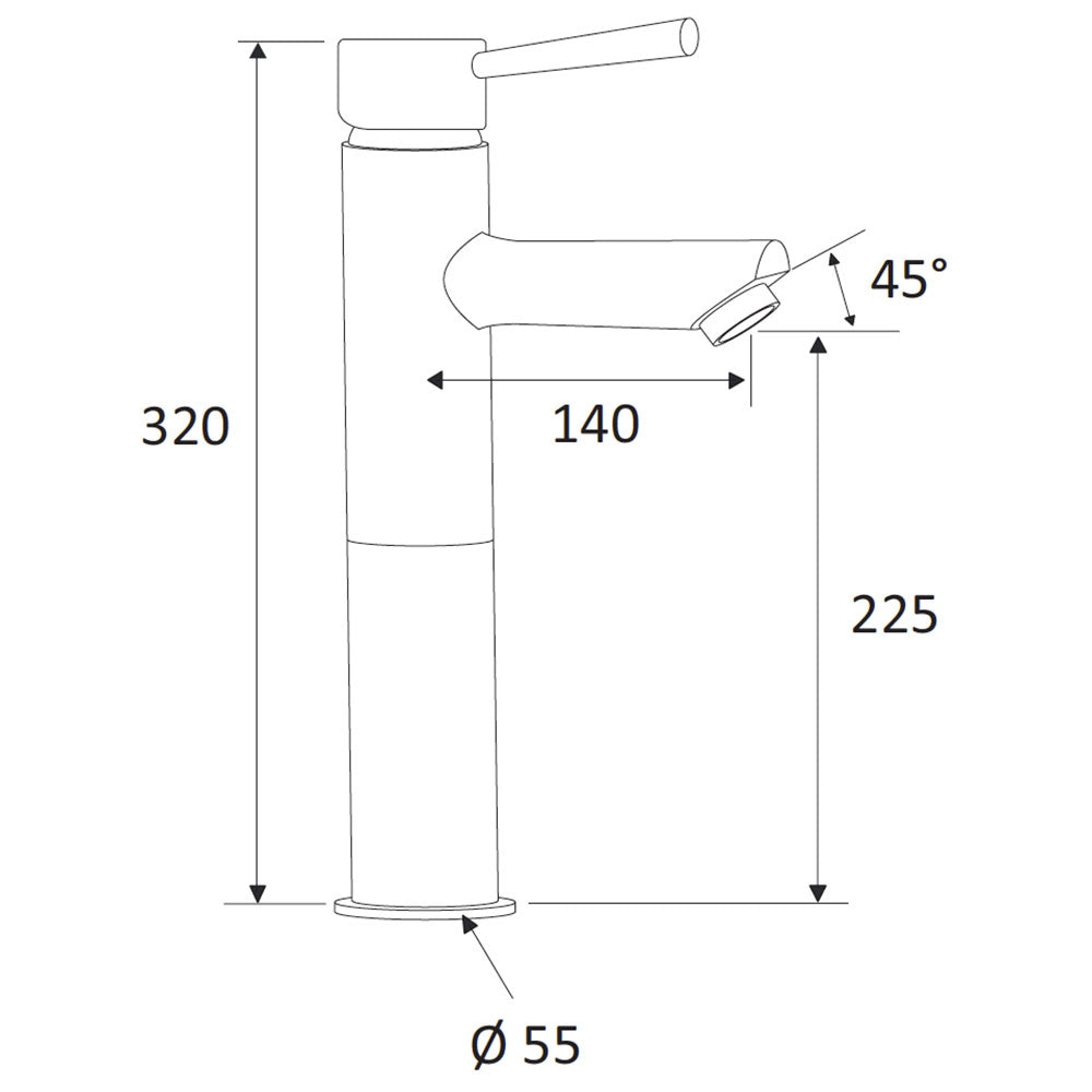Miscelatore monocomando Lavabo Alto senza scarico Mariani Artic 397/HR. Regolazioni cartuccia a dischi ceramici ø 35 mm.