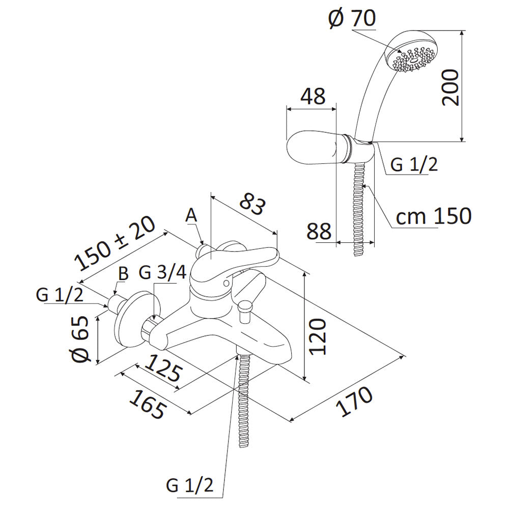 Rubinetto Miscelatore Monocomando Vasca Esterno Doccetta in Ottone Mariani Epic Cromato