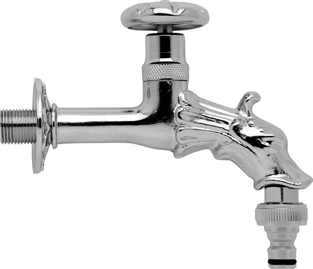 Rubinetto da esterno artistico adatto per fontane o da montare su muro. Corredato di attacco rapido ancora più facile per lirrigazione del vostro giardino o terrazzo.