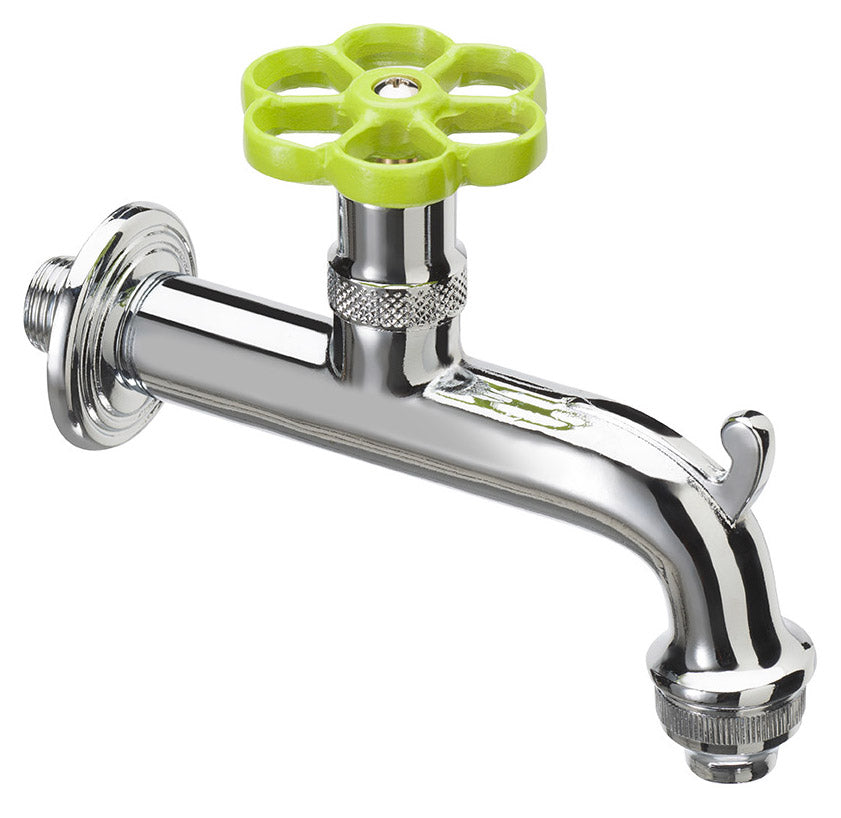 Rubinetto per Fontana da Giardino in Ottone Cromato con Ghiera in Tinta Belfer RUB/018 Verde Acido