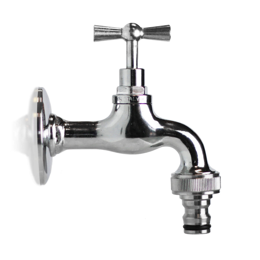 Rubinetto per Fontane da Giardino in Ottone Cromato Lucido con Rosone