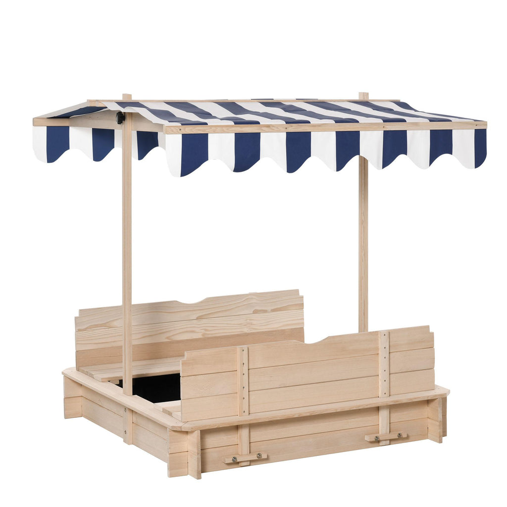 Sabbiera da Esterno con Tettuccio Parasole 106x106x121 cm in Legno Bianco e Blu