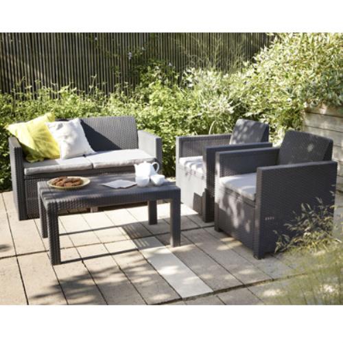 Set da Giardino Divano 2 Poltrone e Tavolino in Resina Polirattan