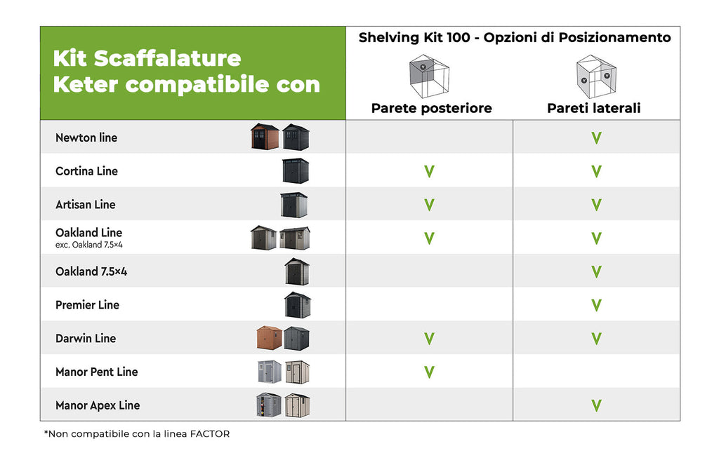 - Compatibile con tutte le principali linee di casette Keter