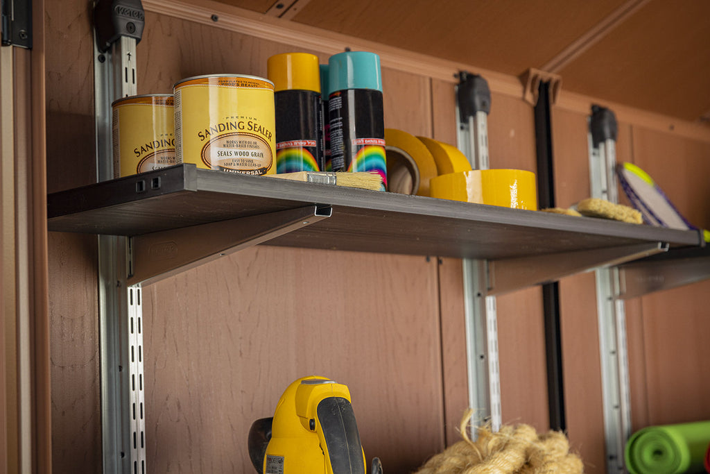 Il Shelving Kit 100 è un must per chi cerca uno scaffale robusto e versatile! Caratterizzato da una struttura in metallo resistente, si integra perfettamente con qualsiasi casetta Keter. Dotato di tre ripiani regolabili in altezza, ciascuno capace di sopportare fino a 30 kg di peso, offre uno spazio di 97x30 cm per ripiano per sistemare in modo ordinato tutti i tuoi oggetti. Con il suo mix di funzionalità impeccabile e design accattivante, il Shelving Kit 100 è la soluzione ideale per le tue esigenze di organizzazione.