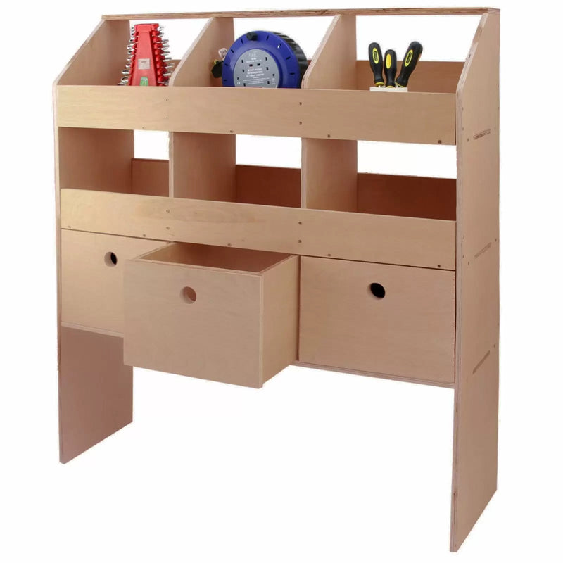 Trasforma il retro del tuo van in uno spazio altamente organizzato, dove puoi trovare tutto ciò di cui hai bisogno velocemente e facilmente, grazie a questo scaffale. Una soluzione fantastica per l’immagazzinamento per diversi modelli di furgone, gli scompartimenti a buco di piccione possono ospitare una varietà di strumenti. I cassetti profondi nel ripiano più in basso possono essere usati per immagazzinare oggetti più piccoli o possono essere rimossi per creare scompartimenti extra.