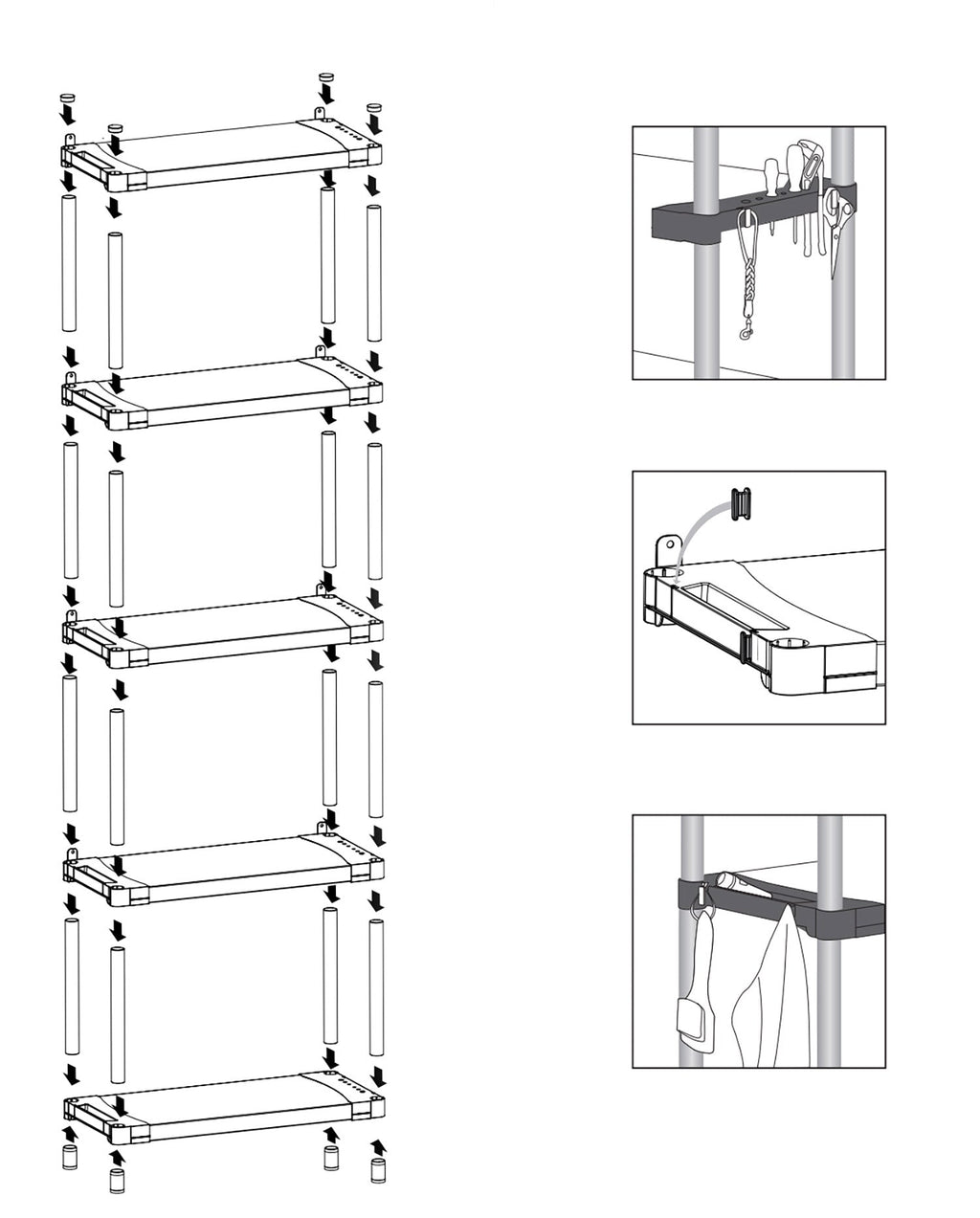 - Incluso: kit di montaggio scaffale con istruzioni illustrate, kit di fissaggio a parete e connettori per sistema modular