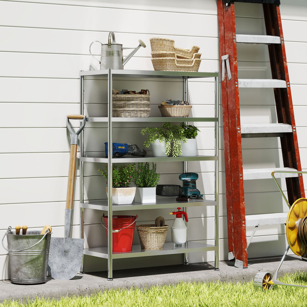 Scaffale da Cucina a 5 Livelli Regolabili 91x40x139 cm in Acciaio Inox Argento