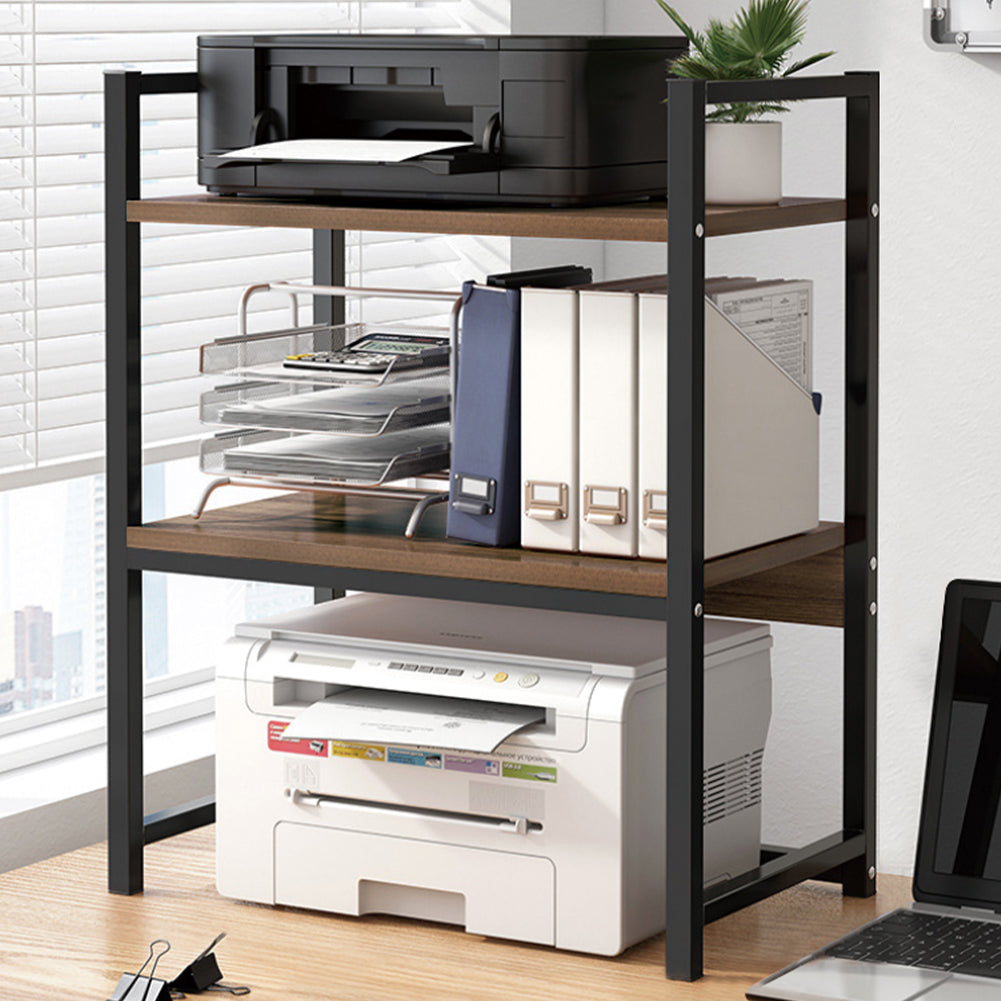 - 1 x Supporto per Stampante Industrial Scaffale Portaoggetti Multiuso Noce e Nero 3 Livelli