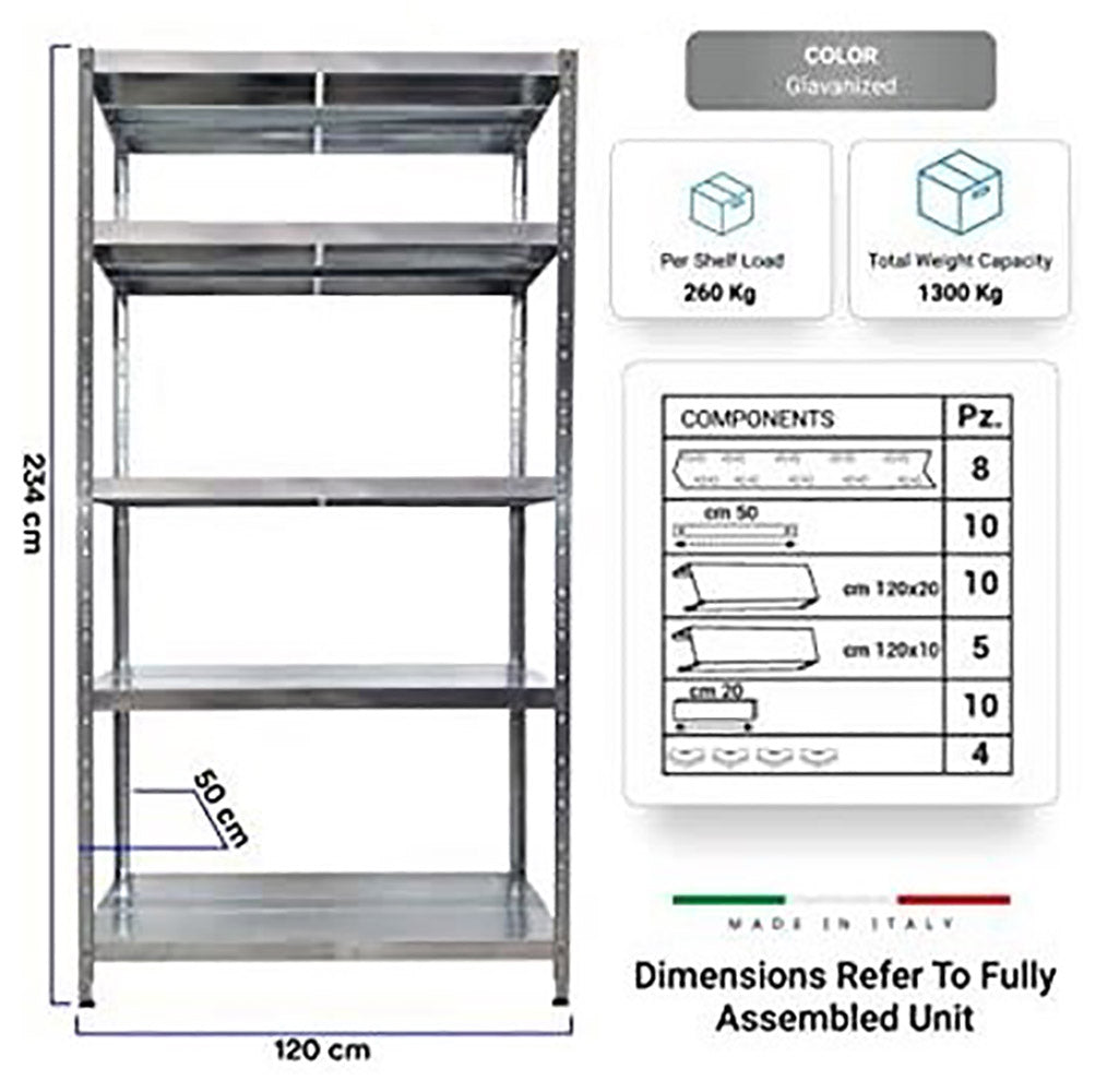 Scaffale in Metallo 5 Ripiani 120x50x234 cm Maciste Zincato