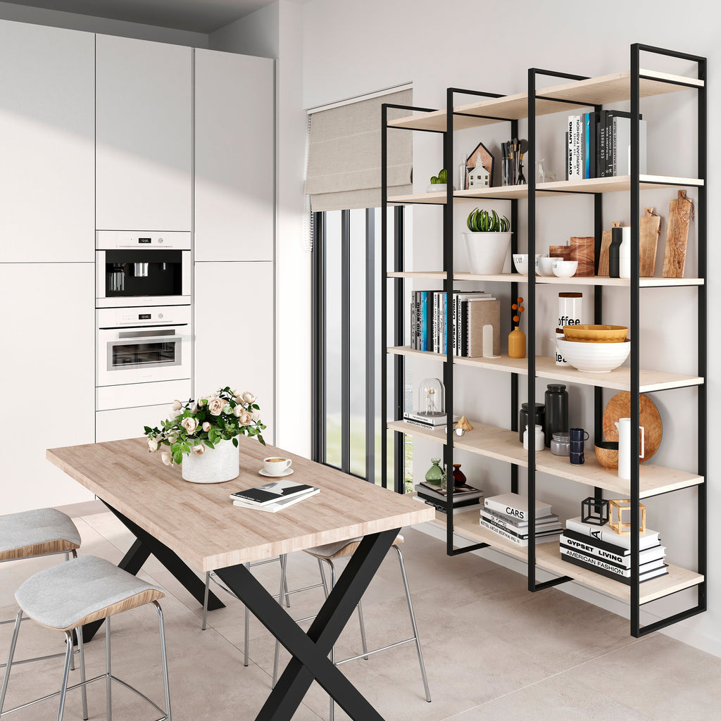 Scaffale composto da una struttura in acciaio e ripiani in legno per decorare qualsiasi stanza della casa, cucina, salone o bagno. Questo tipo di scaffale è concepito per creare degli originali design combinandoli tra loro.