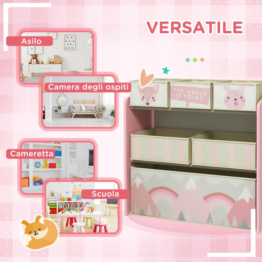 Scaffale Portagiochi per Bambini 63x30x66 cm 6 Contenitore Rimovibili Rosa