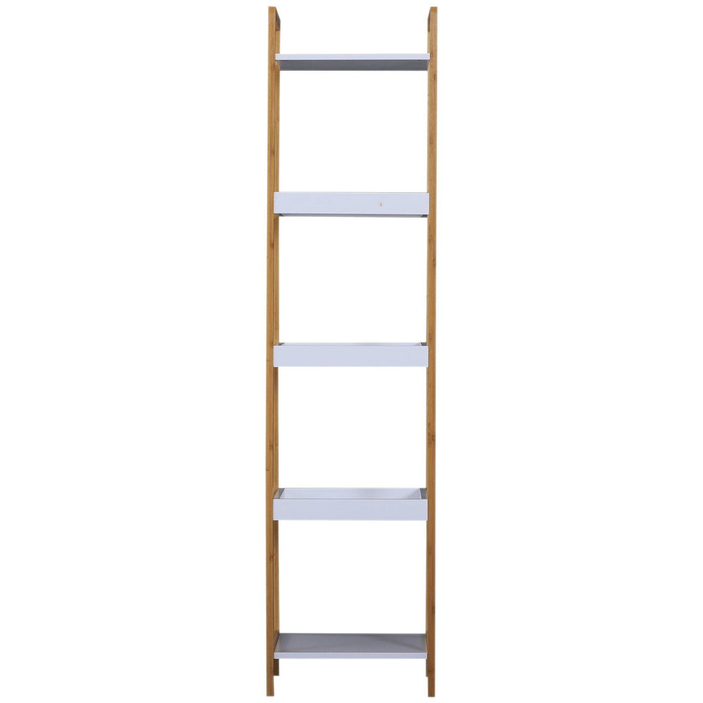 Scaffale Portaoggetti a 5 Ripiani in Bambù e MDF Bianco e Legno Naturale 32x30x130 cm