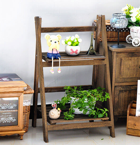Scaffaletto multiuso (fioriera, porta asciugamani, etc) richiudibile, in legno massello di paulownia.