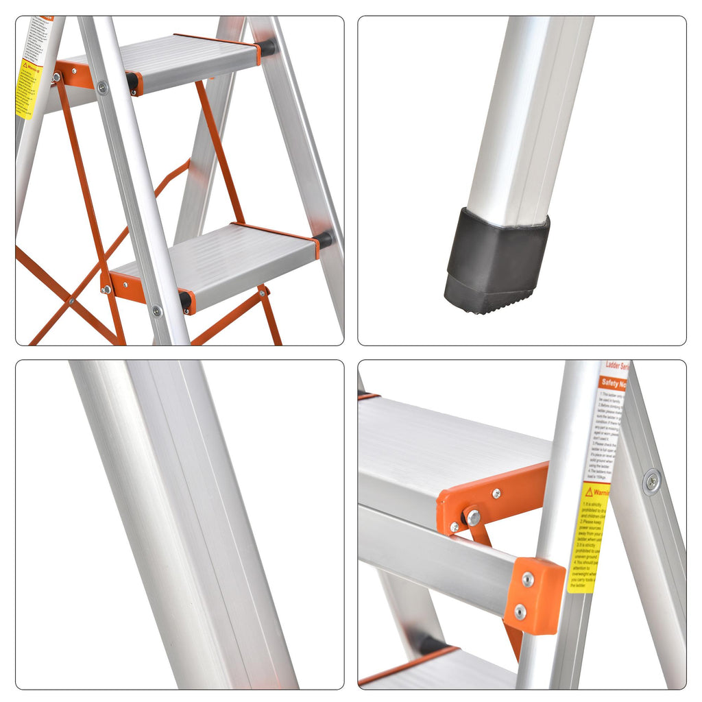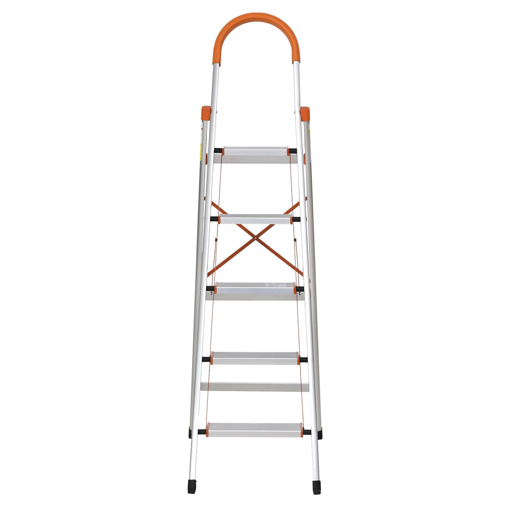 Scala Pieghevole Salvaspazio in Alluminio 5 Gradini Silver e Arancione