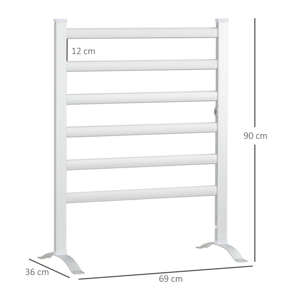Scaldasalviette Elettrico da Bagno 140W a 6 Barre 90x36x69 cm in Alluminio Argento