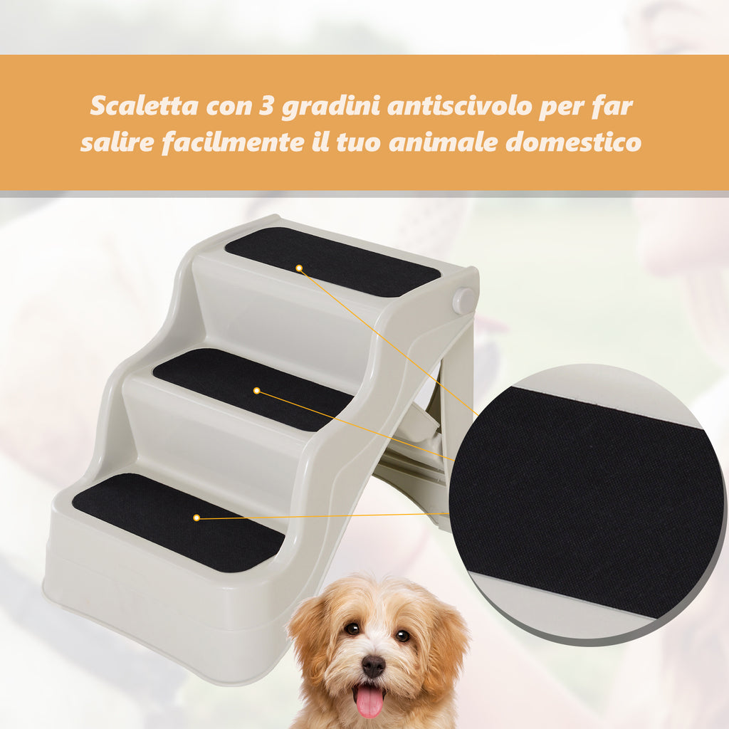 Scaletta Pieghevole 3 Gradini per Animali Domestici Beige 49x39x39 cm