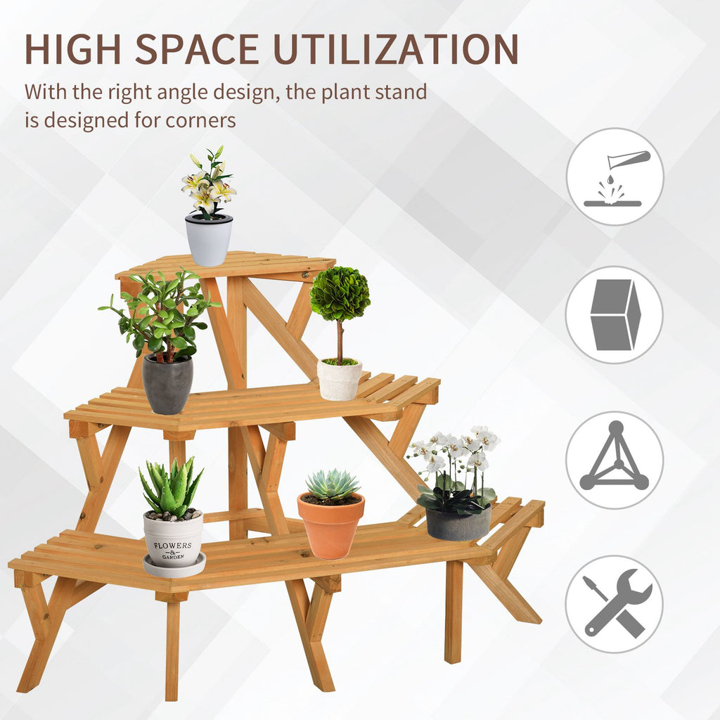 Questo porta vasi in legno angolare di è un complemento ideale per la terrazza e il giardino. Grazie ai 3 livelli ti offre un ampio spazio per riporre le tue piante sfruttando al meglio ogni angolo. La struttura in legno è robusta e dona un aspetto rustico ai tuoi ambienti. Puoi utilizzare questo scaffale angolare per esporre i tuoi vasi oppure oggetti decorativi e portare un tocco di novità ai tuoi ambienti esterni.