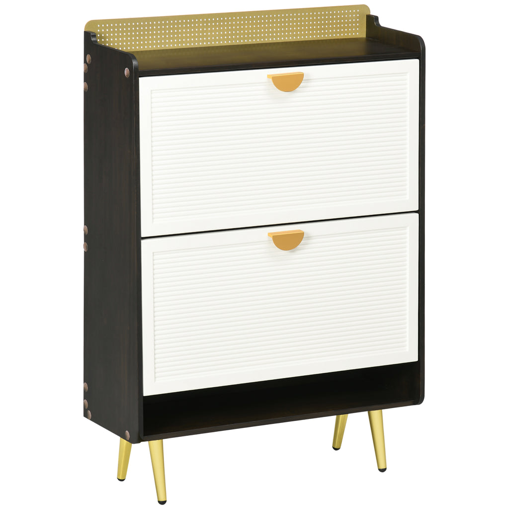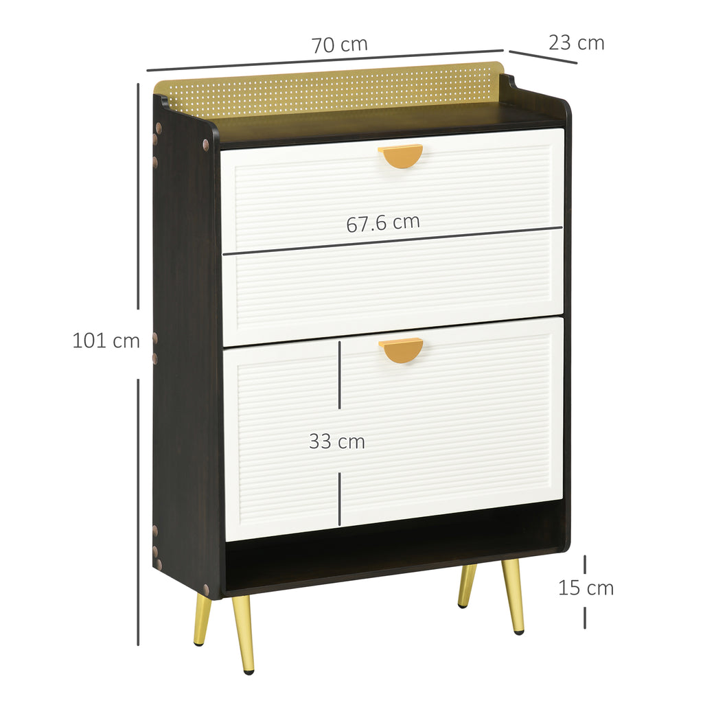 Scarpiera 12 Paia di Scarpe 70x23x101 cm 2 Cassetti e Mensola Bianco Noce e Oro